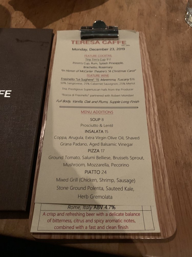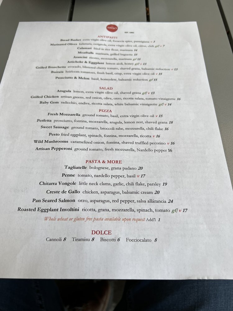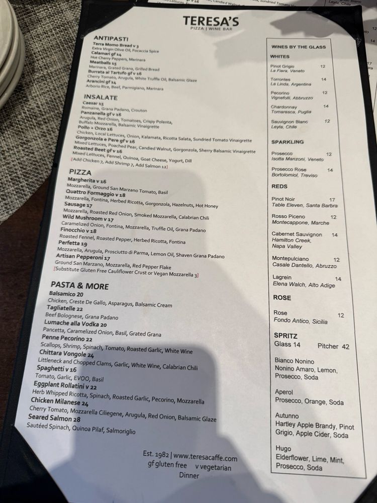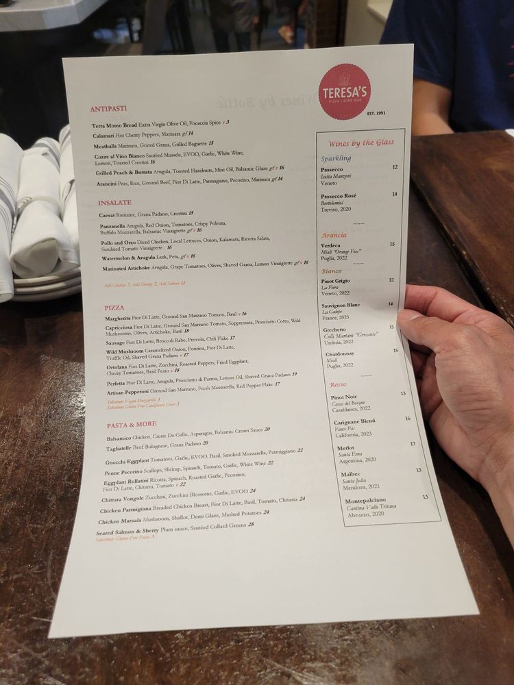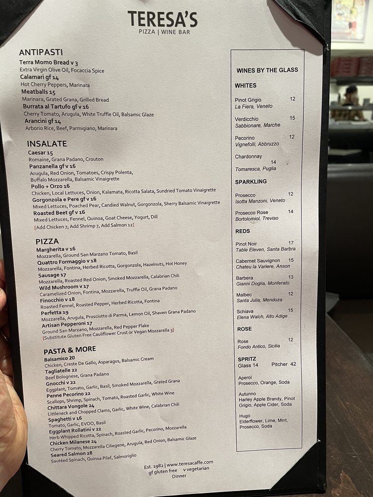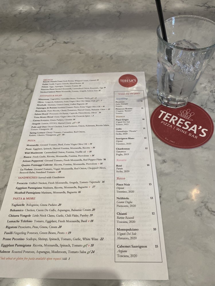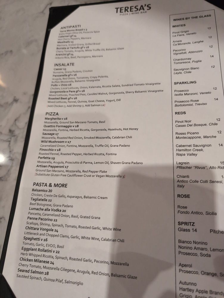 Teresa's Pizza Wine Bar in Princeton, NJ, offers a delightful combination of Italian cuisine, gourmet pizzas, and a wide selection of wines in a cozy and inviting setting. This restaurant provides various amenities such as takeout, delivery, and vegan options, making it suitable for a diverse range of diners. With its welcoming ambiance and accommodating staff, Teresa's is perfect for casual dining experiences, group gatherings, or even a fun night out. The menu boasts a range of delicious pizzas, including vegan and vegetarian choices, alongside a full bar offering. Whether you're looking for a quick bite or a leisurely meal, Teresa's Pizza Wine Bar has something for everyone. Visitors can also enjoy outdoor seating, free Wi-Fi, and the convenience of online reservations. Don't miss out on this charming spot for a memorable dining experience in Princeton.